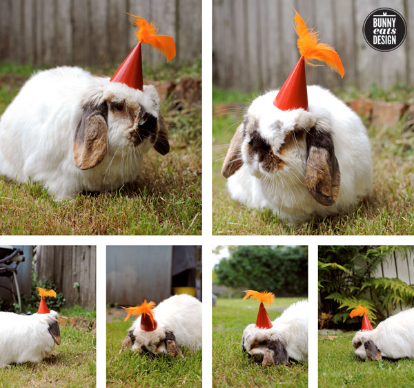 Tofu was feeling particularly festive this week so I followed him around the garden wearing his party hat. I’m sure he said (through a series of nose twitches) that grass tastes better when you’re wearing a sweet hat.