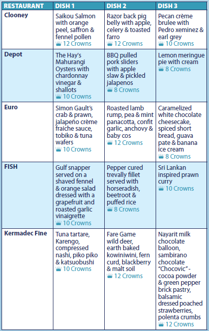 - Kermedec Fine: Fare Game wild deer, earth baked kowiniwini, fern curd, blackberry and malt soil – 12 Crowns