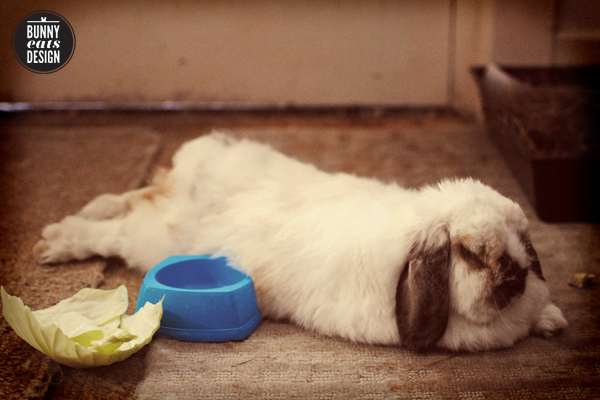 Like many house bunnies, Tofu can be found kicking back and relaxing after a feast.