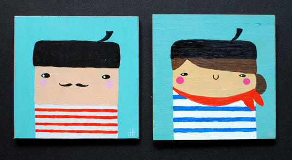 Acrylic on wood. Some of these are still for sale so head over to her Facebook page or her blog for more info or to contact her directly.