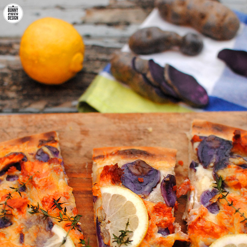 I had smoked salmon today too, but a quiche instead of pizza 😀 I love that vibrant colour of your pizza, especially the potatoes, looks so special
