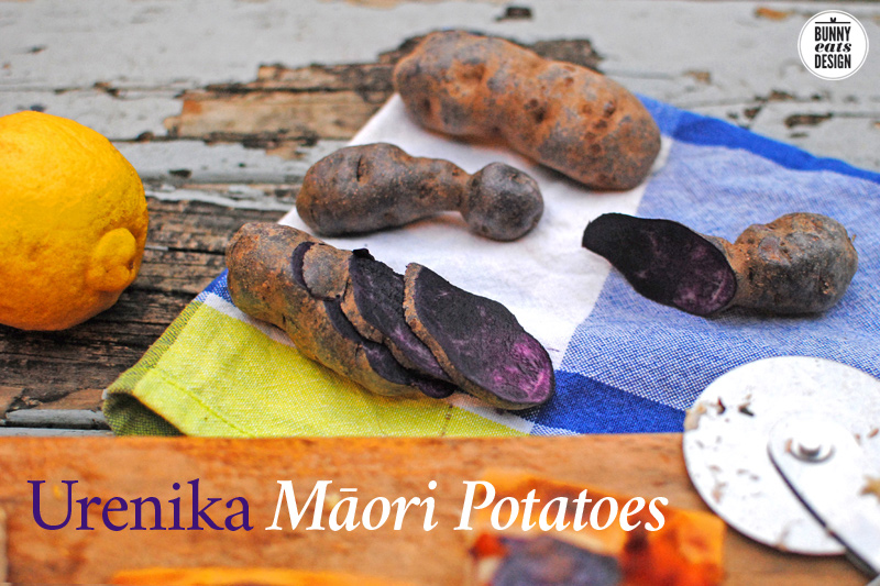 The deep purple Urenika or Maori potato is precious here in New Zealand. They are pretty boring looking the outside, and their secret is within. The small knobbly spuds can be found at most farmers markets but are absent from supermarket chains and as there is no mass farming of these potatoes. It’s as shame as they are quite beautiful to look at and taste earthy. I guess their rarity makes them more special.