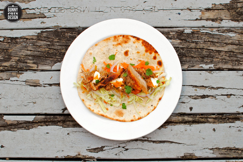 What sets this apart from any other tortilla I’ve eaten is the crackling. You may know crackling by other names such as pork scratchings or pork rind. It’s the sole reason why I always get roast pork over beef, chicken or lamb. Crackling in any kind of sandwich adds amazing flavour and texture. Just in case you were curious, this is not a health food blog. Check back tomorrow for my Slow Cooked Orange Pulled Pork recipe complete with crackling.