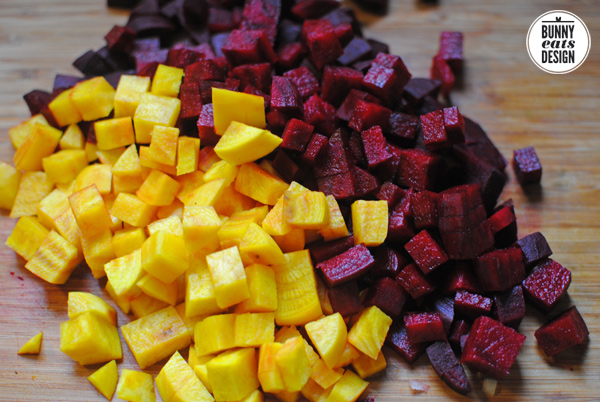 I used 2 regular beetroot and 1 golden beetroot, but feel free to use all regular beetroot. The colour will be lovely either way. Our Honesty Boxes are giving us a lovely bounty of beetroot and herbs. It seems a shame not to show these off.