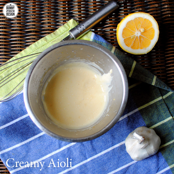 Some vigorous whisking is required for this recipe and requires your full attention for a short time. You could make use of a spare set of hands or take turns. I had fun with this as I had some energy to burn but maybe give this one a miss at the end of a long day or if you have a dozen other kitchen tasks to multi-task. Personally, I would start with the aioli and multi-task your other dishes only after this is done.