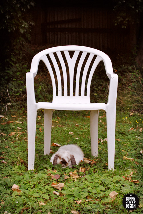 We have a single plastic chair in our backyard. Tofu knows where to sit.