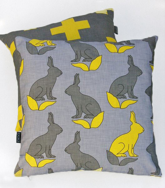 On the cotton-tails of Citta’s sleepy rabbit cushion last week, here’s a bunny cushion by another NZer called BOLD.