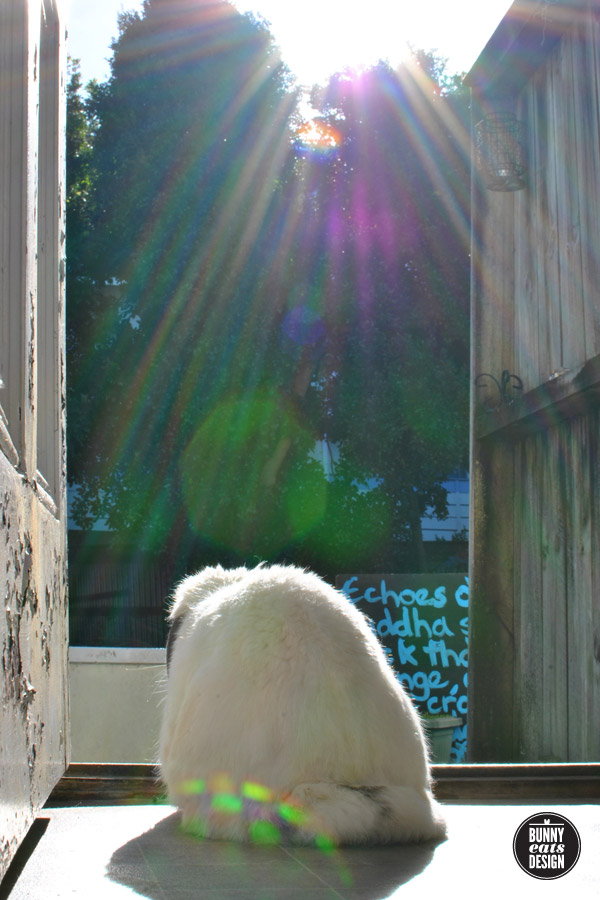 Our neighbours are having a fence put in, so until the new fence goes up, there is nothing to separate our properties. They have a dog, we’ve got a rabbit and therefore, Tofu the bunny has been spending his days indoors. He hasn’t been pleased about it but in the weekend, we cordoned off the deck so that he could have some sunshine time.
