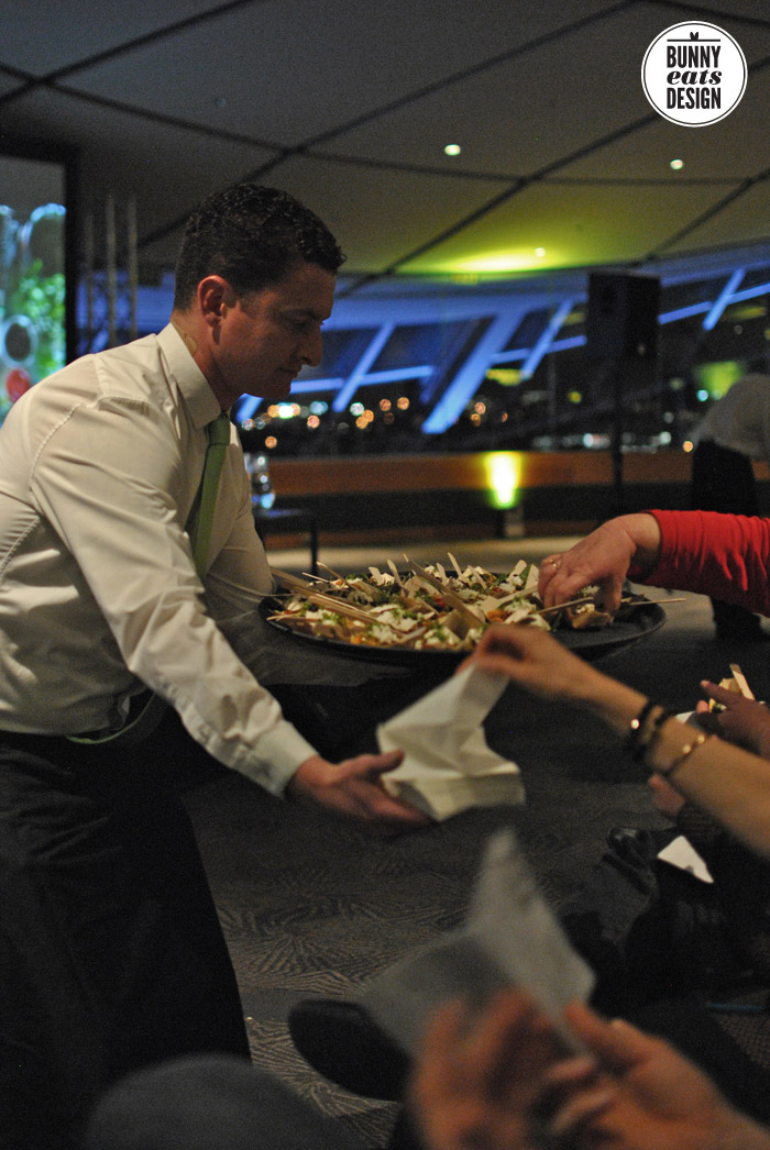Located in Auckland Museum’s events centre on top of the museum, the space has 360° night views of the city and harbour. The night was hosted by Aucklander Jesse Mulligan who you might know from TV or radio or Metro magazine or his food blog which is generically cleverly named the Auckland Food Blog. Providing both comic relief and a relaxed tone for his guests and panelists: Professors Rod Jackson and Grant Schofield provided insightful academic banter while celebrity chefs Al Brown and Anne Thorp provided the foodie perspective.