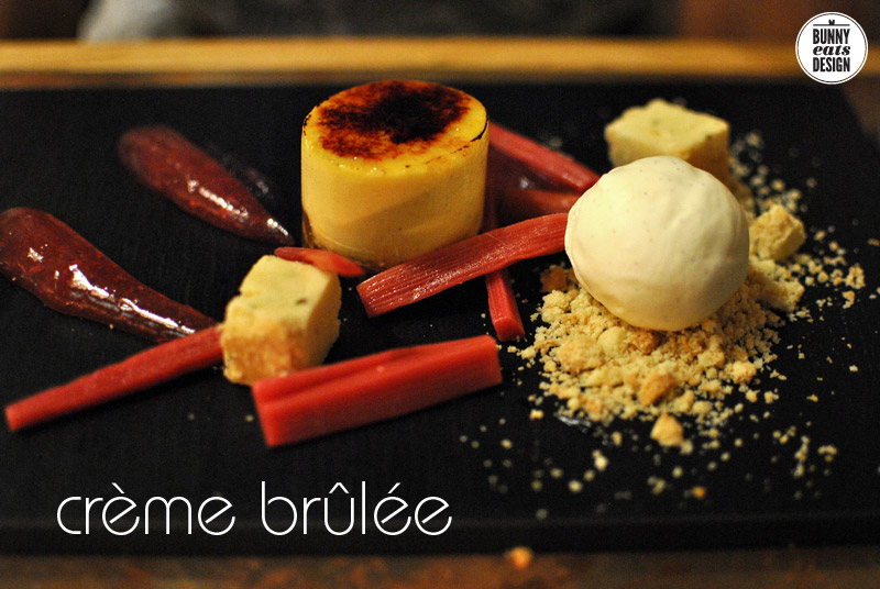 I’m intrigued by the Crème Brûlé, what is cut from a larger piece or was it in a tiny glass bowl? The presentation is lovely.