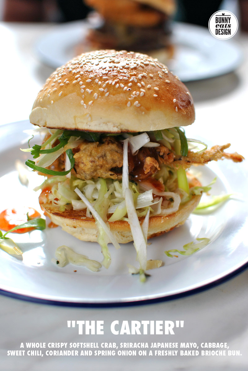 I ordered “The Cartier” which is a whole crispy softshell crab (legs comically sticking out the side), sriracha Japanese mayo, cabbage, sweet chili, coriander and spring onion on a freshly baked brioche bun. I’d see this burger on Al’s Deli Facebook page several times and just had to try it.