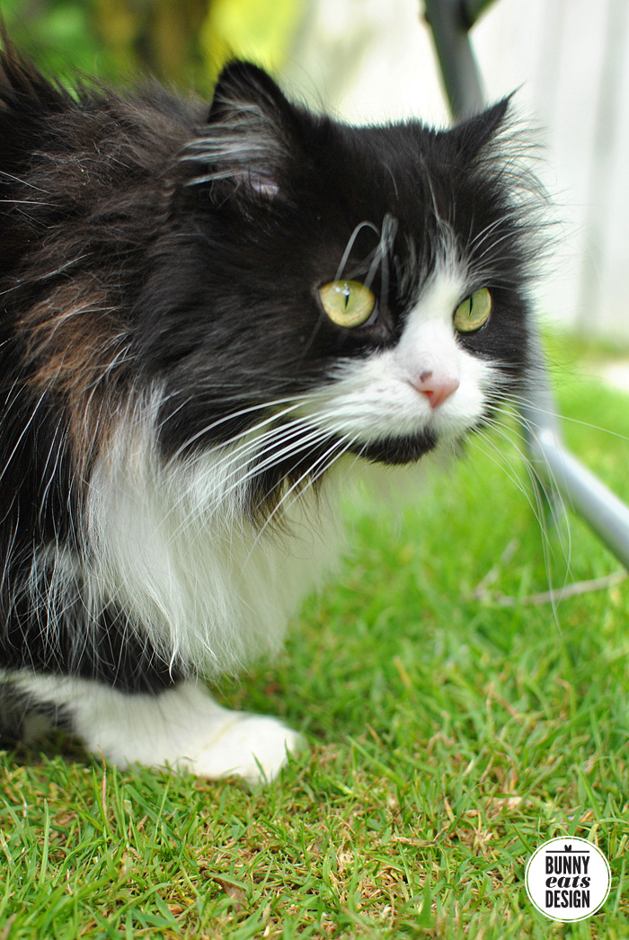 Max is our fluffy and timid neighbour who spends most of his time indoors. Last weekend, he ventured out into our shared backyard and even let me close enough to pet him.