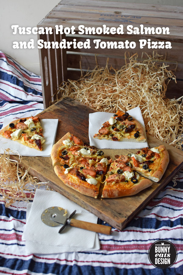 Sealord Manuka Hot Smoked Salmon Tuscan is a blend of thyme, rosemary and a hint of garlic. It was begging to be made into a pizza. We enjoyed this for lunch served with a couple of beers and a healthy dose of sunshine. This recipe was given thumbs up both me and The Koala. If Tuscan flavour is not available, feel free to use any herb flavoured smoked salmon or natural smoked salmon.