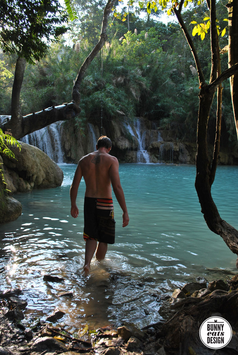 The Koala braving the wintery waters at Kuang Si Falls, Luang Prabang, Laos