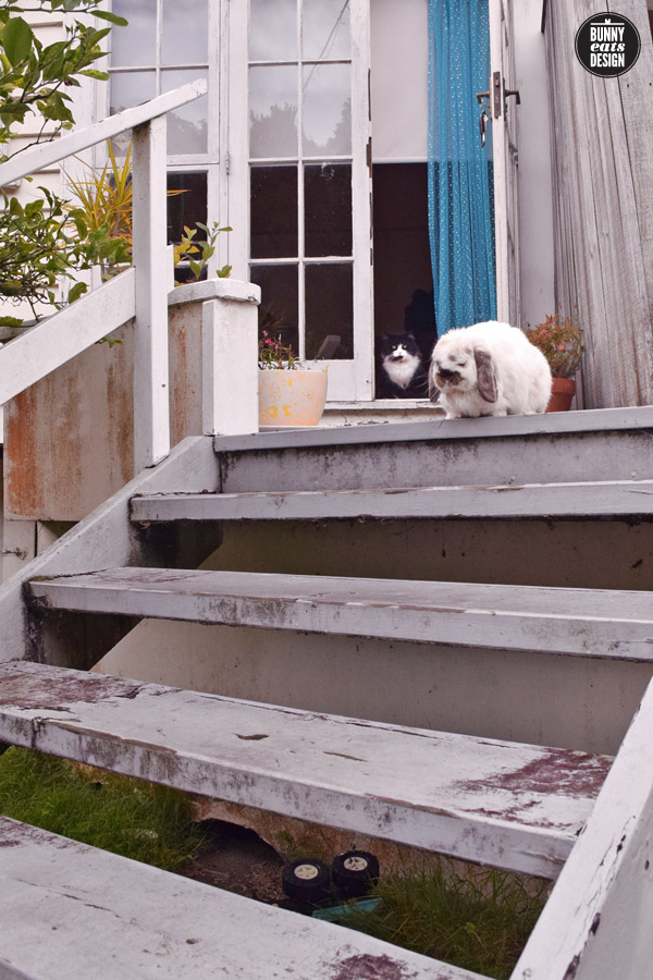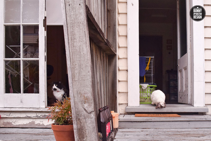 In the mornings Tofu often runs to the back door to be let out. Max, the cat from next door is a bit more hesitant.