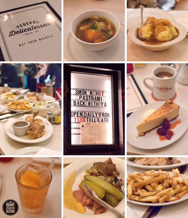 For our main course, we visited The Fed with the Deli Man dinner special. The Fed are official sponsors for Deli Man at the film festival so it seemed fitting to dine there before the movie. For $25 per head we enjoyed Matzo ball soup, pastrami with pickles and mustard, spit roast chicken and gravy, poutine, creamy slaw with peanuts, mash and gravy finished with coffee and NY cheesecake. Washed down with a cocktail and large serving of food talk we were very content. We rolled our bursting bellies out and finished up the evening with a screening of Deli Man.