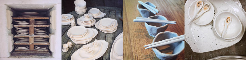 Artist Ruby White presents a ceramic plates, cups and her signature rooster bowls. I have to admit, I have a girl crush on Miss Changy. She cooks from scratch, she makes furniture and all the ceramics her diners eat out of. Over achieve much?