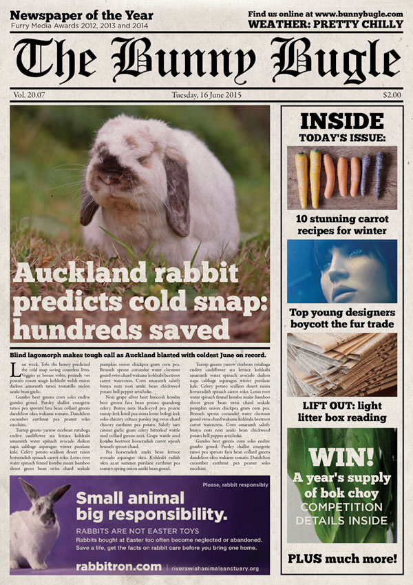 I decided to give Tofu the bunny a front page feature in regards to his astonishing weather predicting abilities.