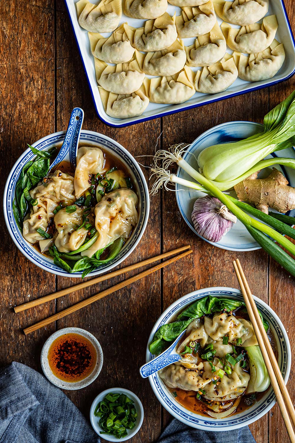 Maybe it’s because I was born in Hong Kong, or maybe that has no factor in this whatsoever, but wonton soup is my absolute favourite comfort food. Like, OF. ALL. TIME. I’m just getting over a cold this week and this is basically what I want to eat every day. My recipe below is for Pork and Shiitake Wontons but if you like prawns, replace 100 grams of pork mince with 100 grams chopped prawn meat. The recipe below is in two parts: The wontons and the soup. Make the wontons first and then assemble the soup to order. Flash freeze any extra wontons for future meals. Enjoy!