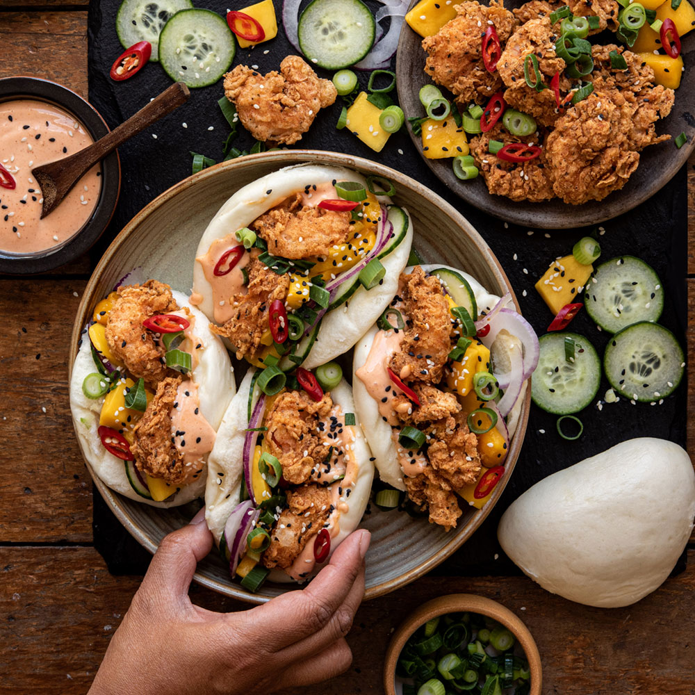 Crispy Prawn and Mango Bao with Chilli Mayo