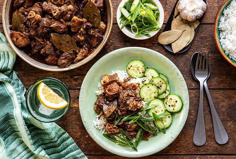 Today marks 6 years since we visited the Philippines and I wanted to share this adobo recipe with you. Adobe is a chicken or pork stew with vinegar and black peppercorns from the Philippines. So beloved, it is served for daily meals, at parties and feasts. Traditionally made on the stove top, I adapted this for the slow cooker. This recipe makes a generous amount and adobo leftovers are a gift that keeps on giving. Serve with fluffy white rice, fresh cucumber slices and spring onion garnish. Slow Cooker Pork Shoulder Adobo 15 mins prep | 8 hours cookDifficulty: Easy | Serves 6 šš”šš„ššššš”š§š¦2kg pork shoulder (or 1.5kg diced pork pieces)1 Tbsp cooking oil2 onions, chopped1 Tbsp whole black peppercorns1 cup white vinegar½ cup light soy sauce1 Tbsp dark soy sauce3 Tbsp soft brown sugar8 cloves garlic, sliced5 dried bay leavesTo serve: spring onion, cucumber slices and rice š£š„šš£šš„šš§šš¢š” This recipe was created for NZ Pork