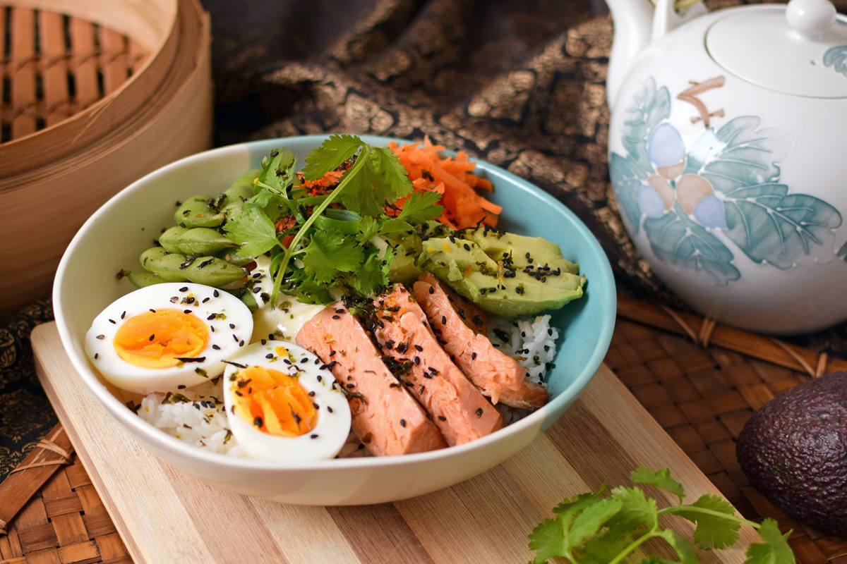 Avocados are back in season, baby. It’s time to GORGE. This recipe features my current favourite way to eat avocado: Cut in half, flesh scooped out. Topped with a dollop of mayo, a rosette of pickled ginger and a sprinkling of black and white sesame seeds. Measurements below are rough. Tweak to your own taste, appetite and preferences. I’ve made a quick sushi vinegar rice but you can totally use plain rice, brown rice or black rice. Prawn sushi bowls 15 mins prep | 30 mins cook Difficulty: Easy | Serves 2 Ingredients 1 cup raw peeled prawns 1 teaspoon salt 2 cups cooked sushi rice 4 tablespoons rice vinegar 2 teaspoons sugar 1 perfectly ripe avocado 2 tablespoons mayonnaise Pickled ginger* Black and white sesame seeds 2 to 3 cups fresh vegetables, sliced, diced or cut into batons Vegetables: radish, capsicum (bell pepper), carrot, red onion, shelled edamame beans, cucumber, daikon, bean sprouts, tomato, cabbage. Sliced spring onion for garnish. 2 tablespoon sushi/sashimi soy sauce with sliced chilli (optional) Preparation Bring a saucepan of …